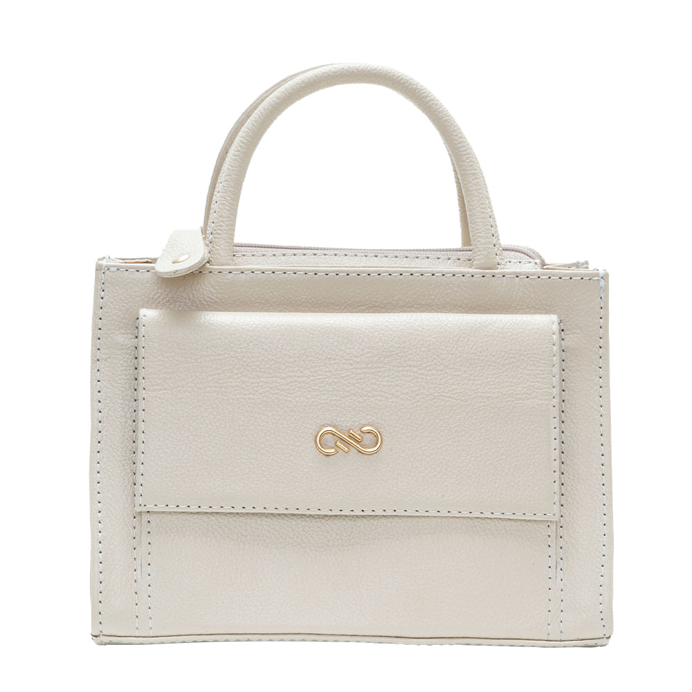 Especificações | ✔ Material: Couro ✔ Cor: Off White ✔ Dimensões: 20 cm (Largura) x 14 cm (Altura) x 8cm (Profundidade) ✔ Ferragens: Com banho dourado e camada dupla de verniz Mostrar menos |